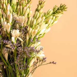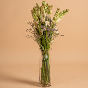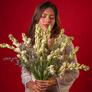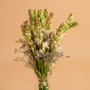 Simple, fragrant, and timeless, this arrangement showcases the pure beauty of tube roses. Known for their long, graceful stems and sweet, captivating fragrance, tube roses symbolise peace, purity, and charm. Their pristine white blooms bring a sense of calm sophistication, making them perfect for both everyday moments and meaningful occasions.